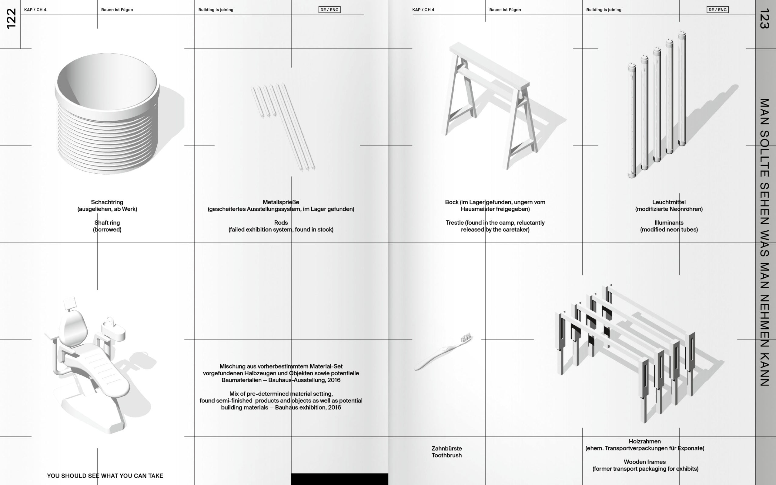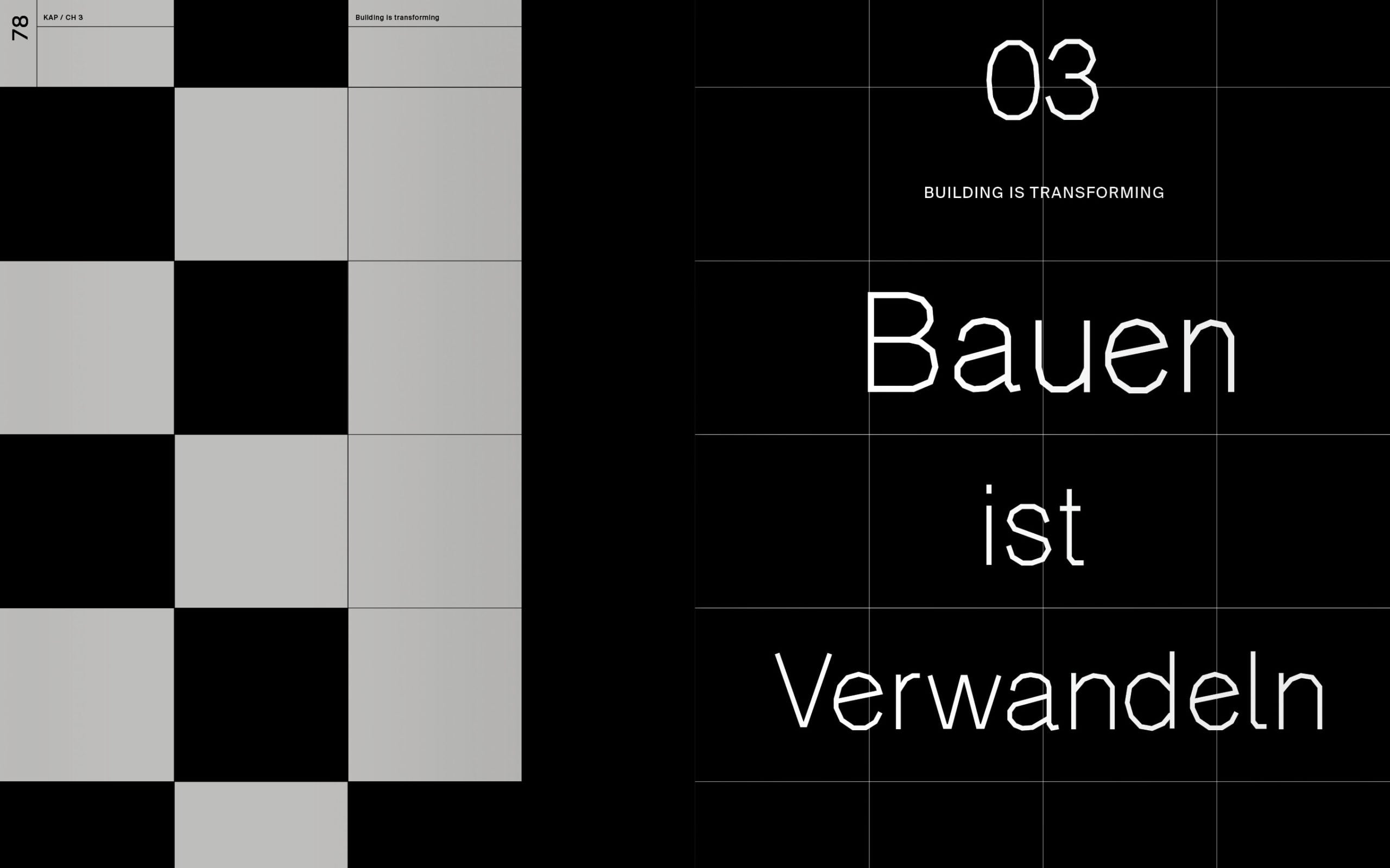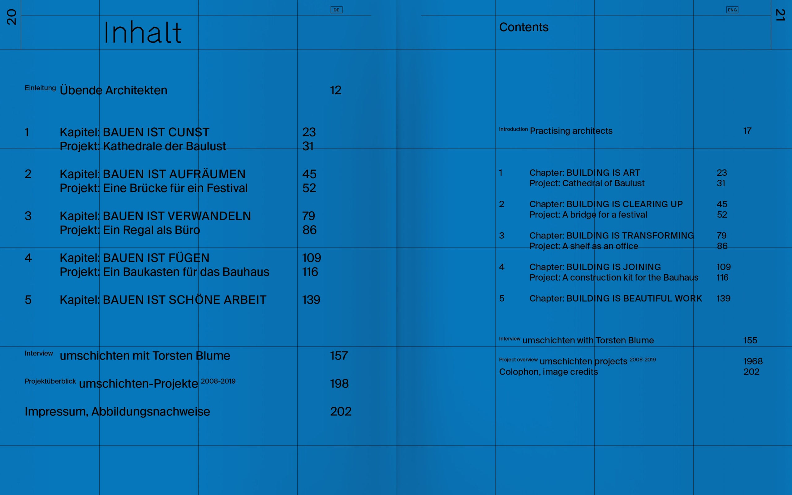 A, (B), C = A. Das umschichten Prinzip stellt Einblicke in ausgewählte umschichten-Projekte Texten und zeitgenössischen Reflektionen über das Bauen als Cunst, Räumen, Verwandeln, Fügen und schöne Arbeit gegenüber und verdichtet so die ephemeren Installationen des Büros zu übergeordneten Debatten.