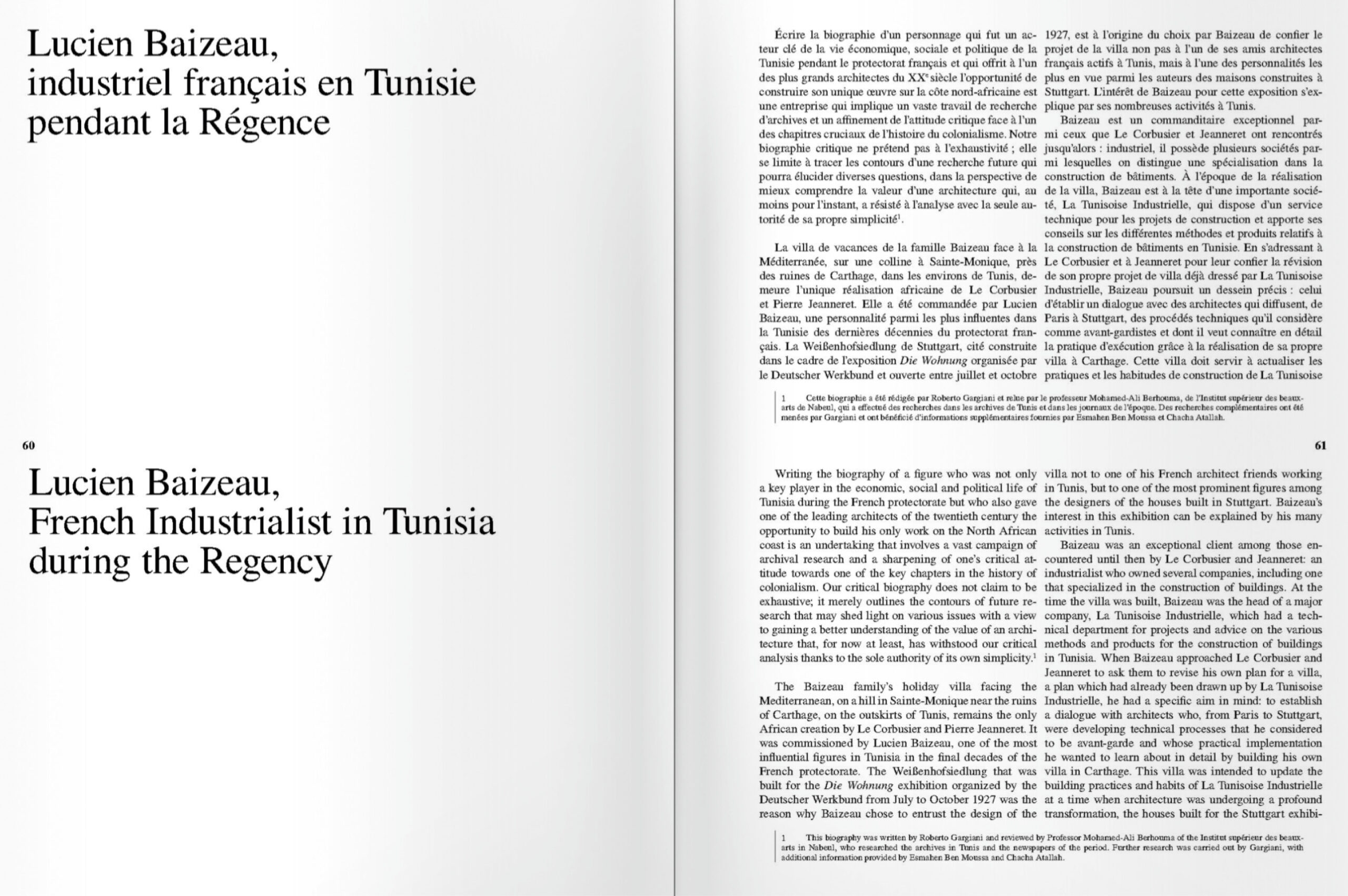 The social, economic, constructional, environmental and climatic issues that, at the start of the 21st century, have called into question the foundations of the architectural project, form the theoretical background to the events devoted to the villa that Le Corbusier and Pierre Jeanneret built in Carthage for Lucien Baizeau, Blanche Thiéblin and their family.