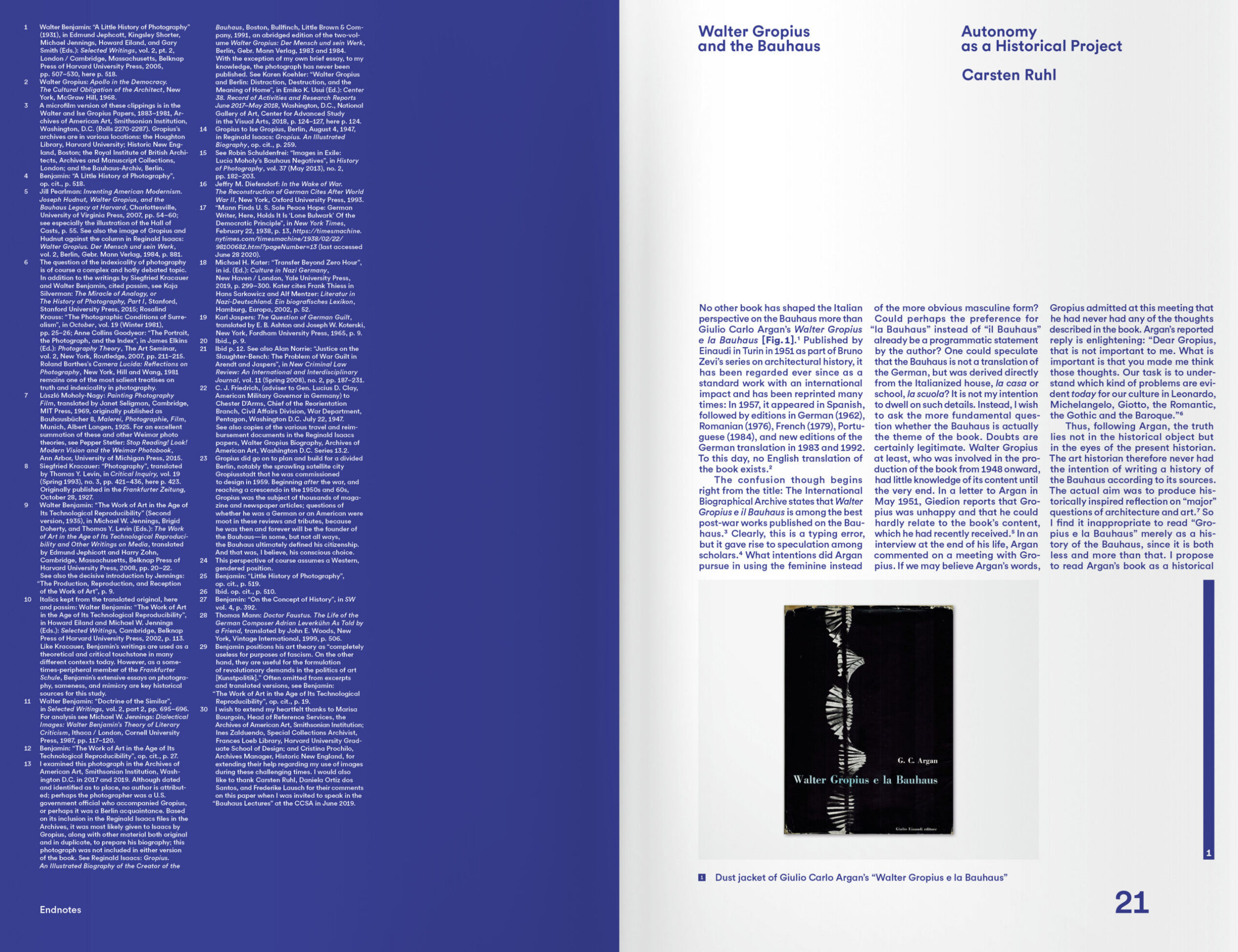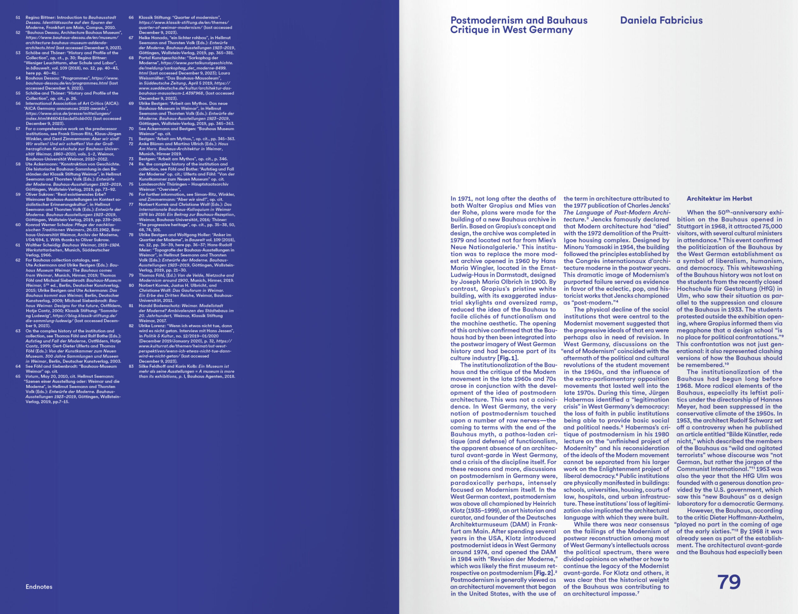 Das Bauhaus, wie wir es kennen, hat nie existiert. Es handelt sich vielmehr um einen Komplex aus Klischees, einseitigen Interpretationen, ideologischen Aneignungen, Missverständnissen, tendenziösen Rezeptionen und historischen Narrativen. Es überrascht daher nicht, dass es als die bedeutendste Kunstschule des heroischen Zeitalters der Moderne gefeiert wurde, während es gleichzeitig genau das Gegenteil dokumentierte: den Verfall von Kunst und Architektur im Zeitalter des Kapitalismus.