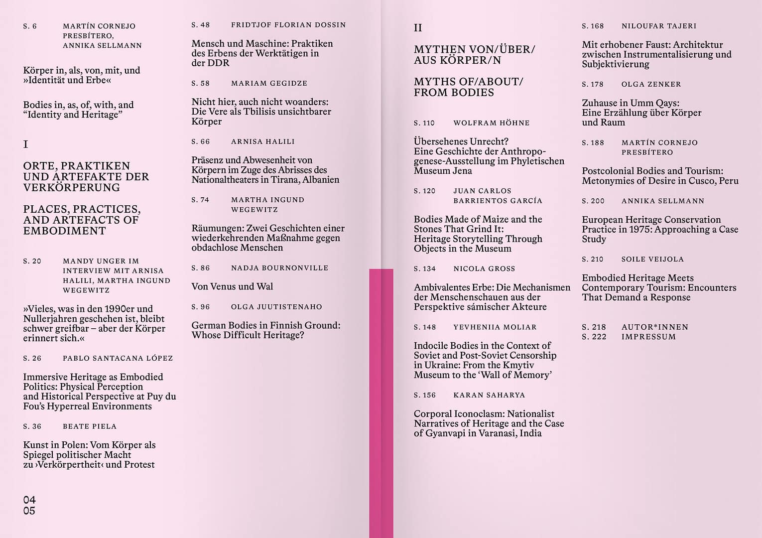 Based on concepts that conceive of the body as a social, politically charged construct embedded in power relations, this volume addresses (non-)human, built, or imagined bodies in the context of ‘identity and heritage.’ The contributions from various disciplinary contexts (architectural theory, building research, monument preservation, cultural studies, art history, spatial sociology, tourism research, urban studies, and artistic research) understand ‘bodies’ not as clearly defined entities, but as epistemic subjects that can also be understood as carriers, media, locations, and actors of knowledge production.