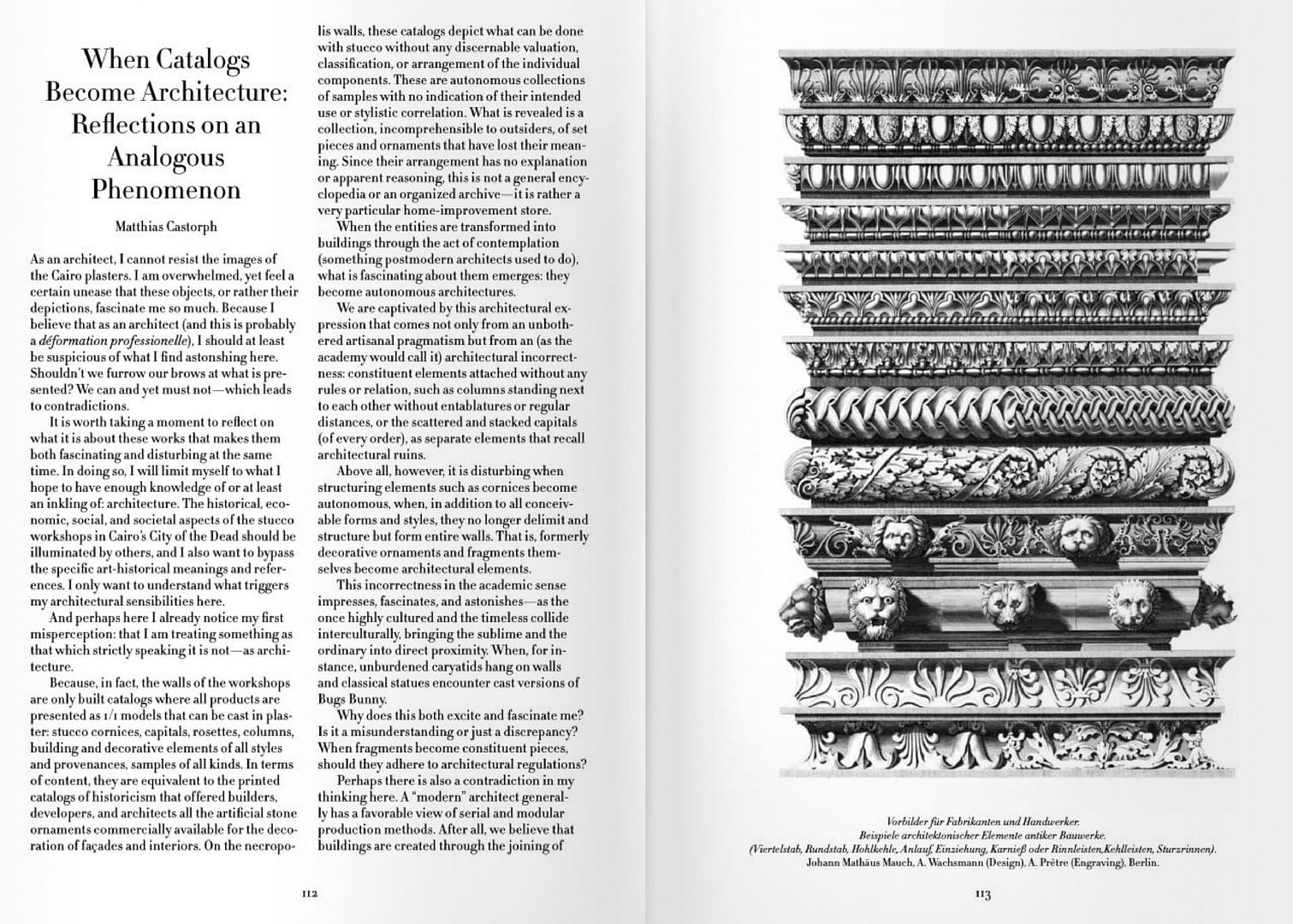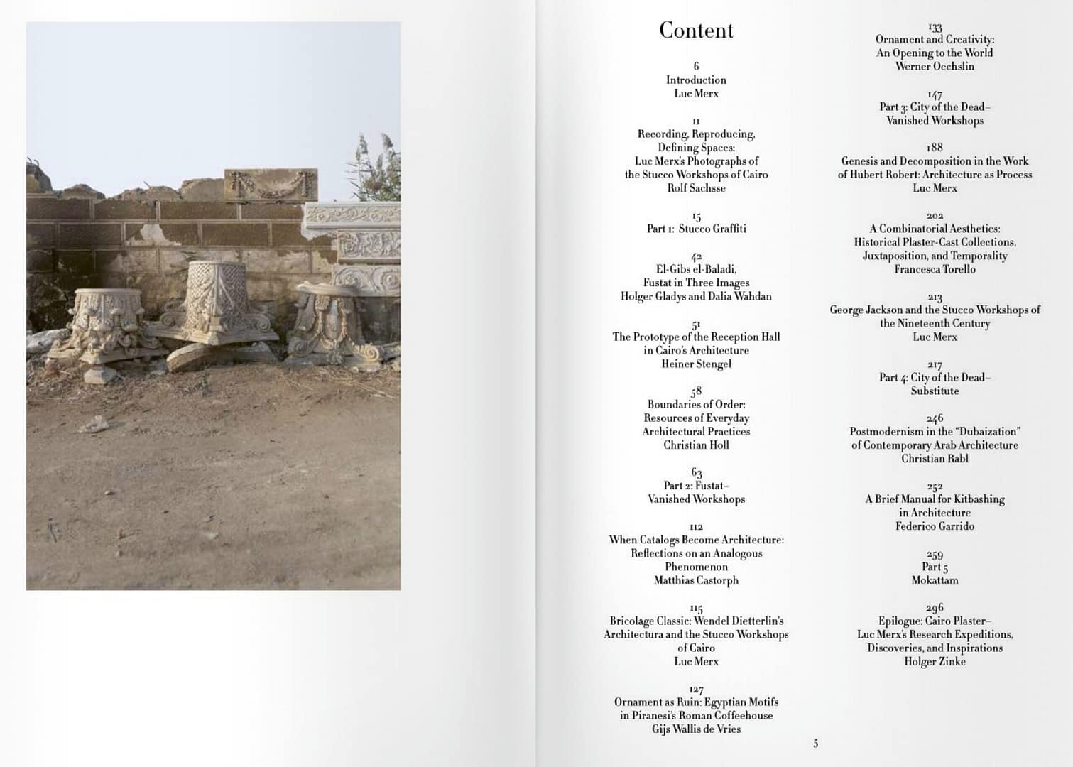 Die Stuckwerkstätten von Kairo verwischen die Grenzen zwischen Atelier, Ausstellungsraum und künstlerischem Statement. Ihre Fassaden und Innenwände sind mit Bauschmuck verziert, der gleichzeitig als Katalog kunstvoller Ornamente dient. Dabei treffen in einer auffälligen visuellen Collage die dekorativen Systeme der Belle Époque auf Ikonen der Popkultur – Akanthusblätter auf Mickey Mouse.