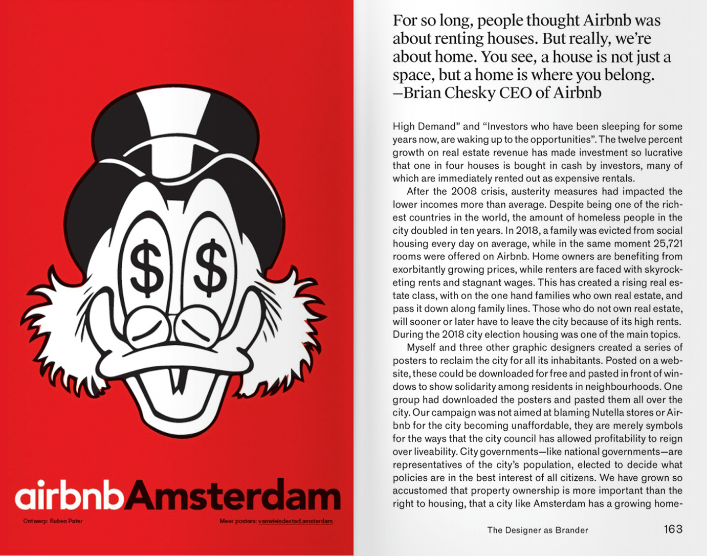 Capitalism could not exist without the coins, notes, documents, graphics, interfaces, branding and advertisements; artefacts that have been (partly) created by graphic designers. Even anti-consumerist strategies such as social design and speculative design are being appropriated within capitalist societies to serve economic growth. It seems that design is locked in a system of exploitation and profit, a cycle that fosters inequality and the depletion of natural resources.