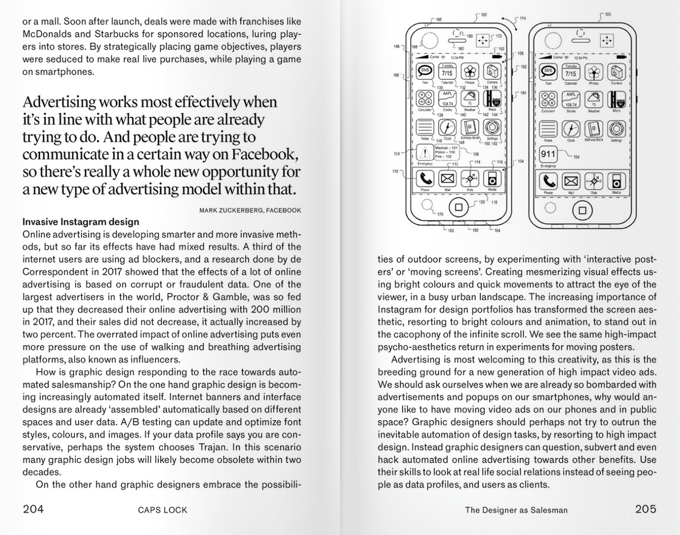 CAPS LOCK uses clear language and striking visual examples to show how graphic design and capitalism are inextricably linked. The book contains many case studies of designed objects related to capitalist societies and cultures, and also examines how the education and professional practice of (graphic) designers supports the market economy and how design practice is caught within that very system.