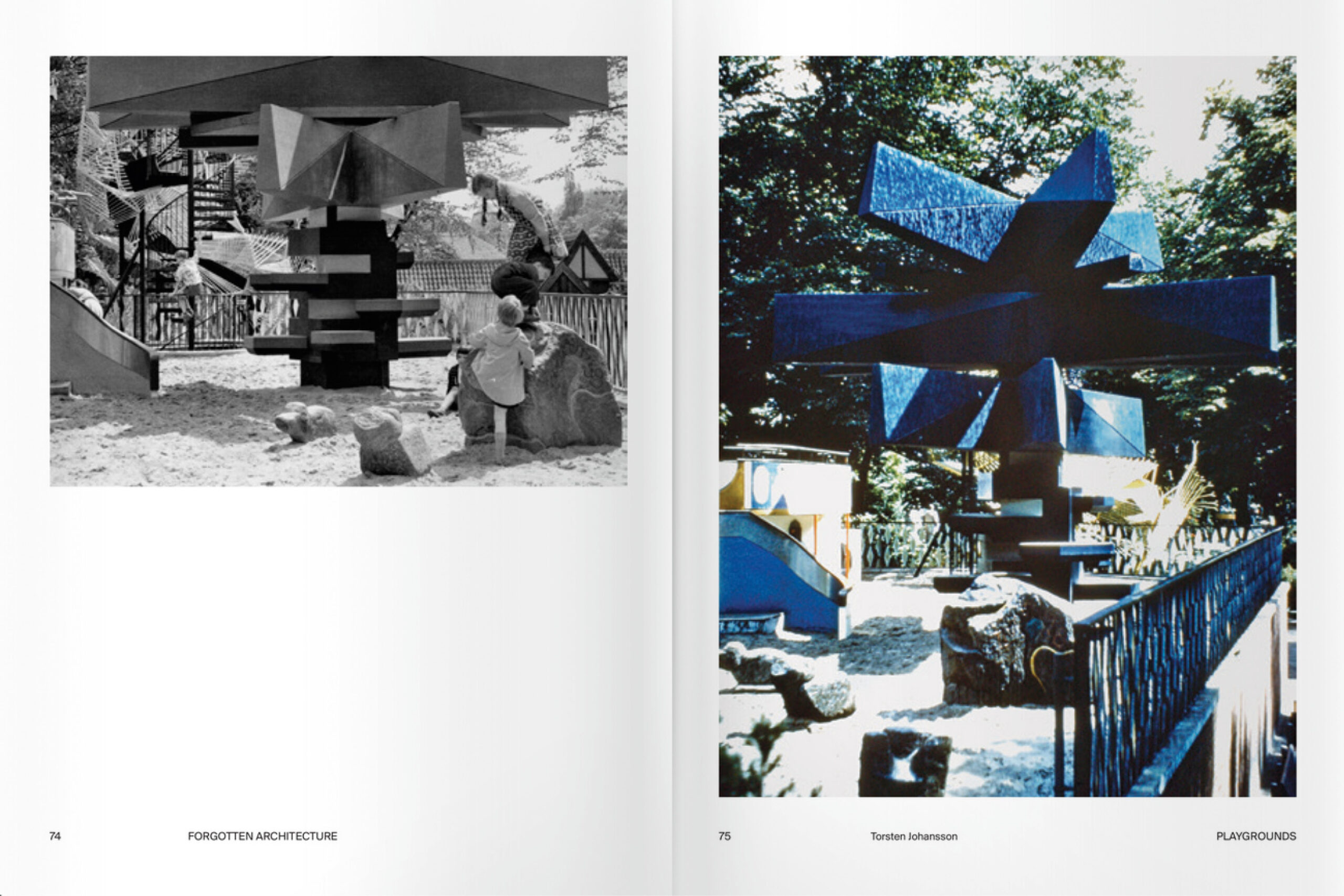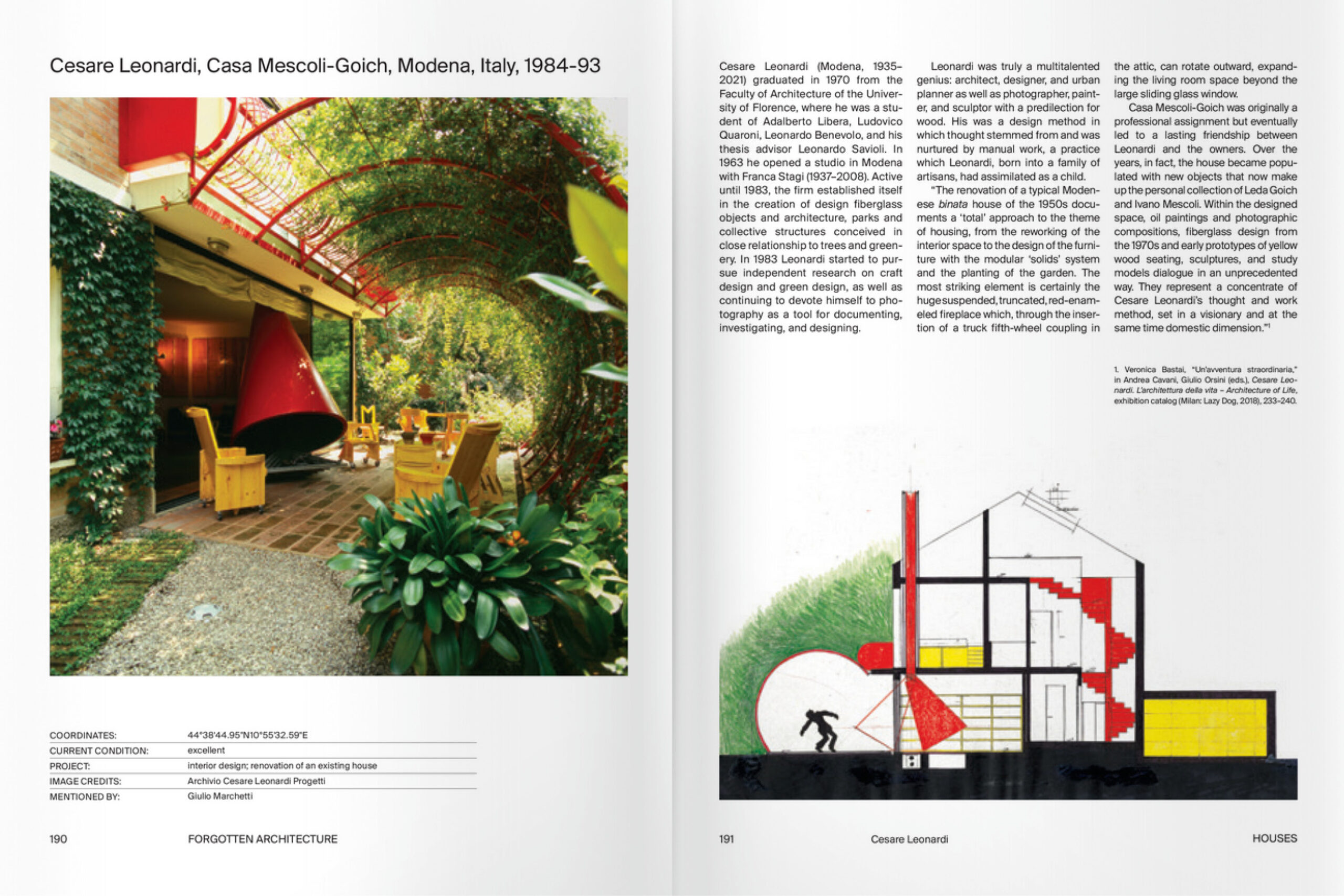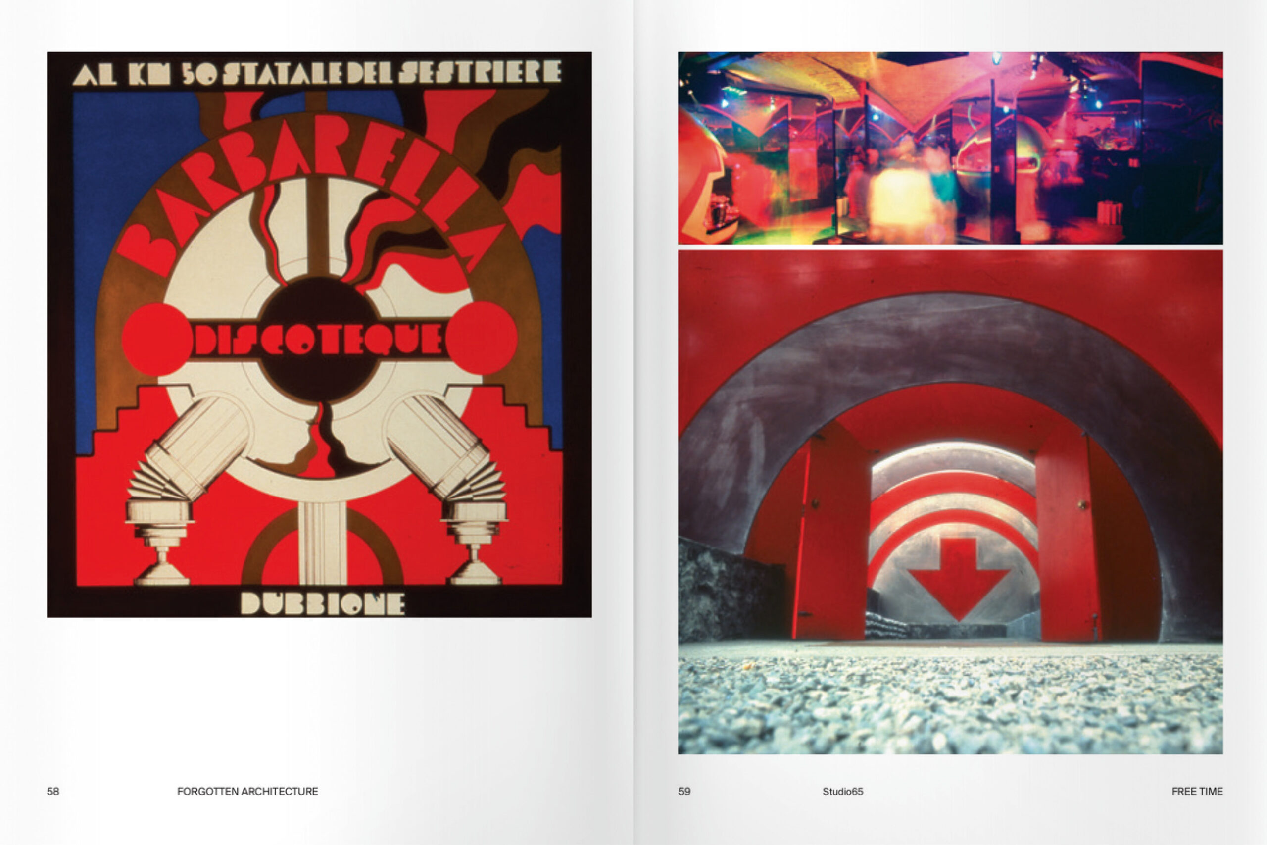 The book maintains its distinctive features of a collective, dynamic, and horizontal experience born on a social network. The publication uses the architectural categories most frequently featured in the group as guiding themes, providing for each project a collection of photographic materials, documents, and drawings from prominent professional firms, institutions, and private archives—such as Fornasetti, Gaetano Pesce, Nanda Vigo, Vitra. Ephemeral architecture, gas stations, night clubs, playgrounds, houses, vacation resorts, cemeteries, churches, architectures in music videos.