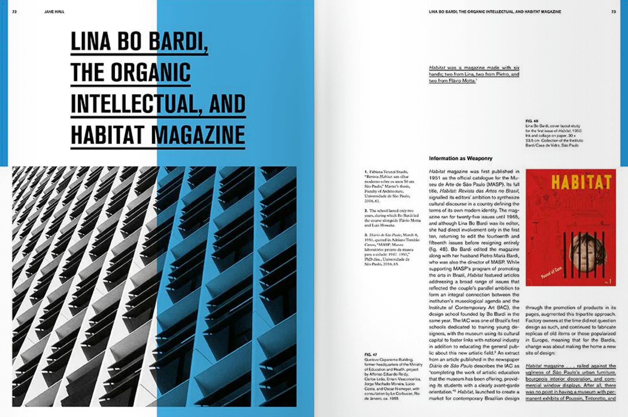 Lina Bo Bardi. Habitat bietet eine umfassende Darstellung von Bo Bardis übergreifendem Ansatz für Kunst und Architektur und zeigt, wie ihre Ausstellungsdesigns, kuratorischen Projekte und ihre Schriften ihre räumlichen Entwürfe beeinflussten. Essays über Bo Bardis Leben und Werk begleiten Archivmaterial wie Entwurfsskizzen und Schriften der Künstlerin und geben neue Einblicke in die konzeptionellen und materiellen Prozesse hinter den Projekten dieser radikalen Denkerin und Schöpferin.