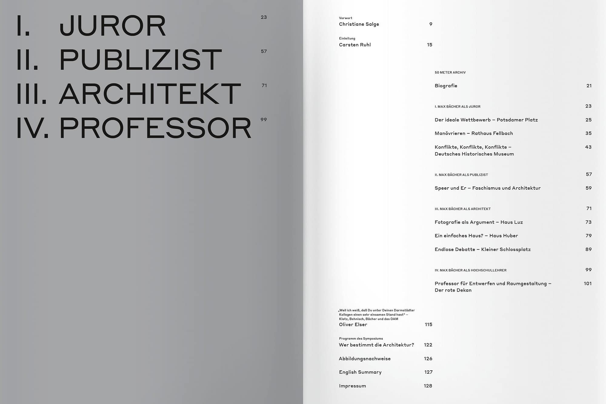 Die Ausstellung präsentierte erstmalig Materialien aus dem Nachlass Bächers, der sich im Deutschen Architekturmuseum in Frankfurt am Main befindet. Mit seinen Unterlagen lässt sich die Architekturproduktion der Nachkriegszeit aus einem neuen Blickwinkel betrachten. Insbesondere Bächers Rolle als „großer Vorsitzender“ in vielen Wettbewerbsjurys ermöglicht Einblicke in die Mechanismen, wie Architektur entsteht.