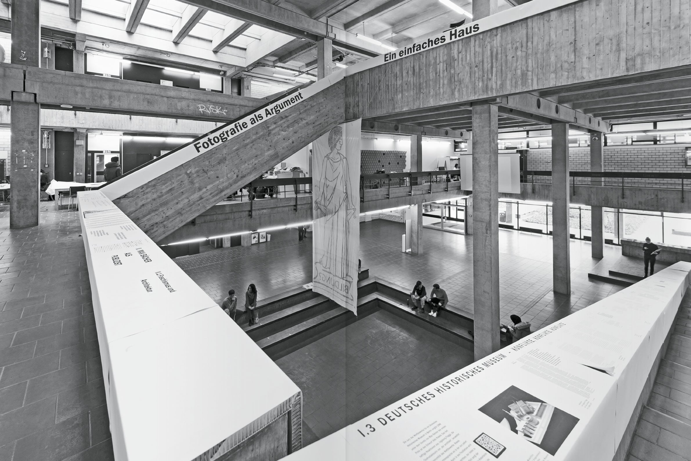 50 Meter, so lang ist die Betonbrüstung in der Eingangshalle des Fachbereichs Architektur an der Technischen Universität Darmstadt. Für die Ausstellung Max Bächer. 50 Meter Archiv wurde der Handlauf der Treppenbrüstung mit Archivfunden überbaut. Bächer war Architekt, Preisrichter, Publizist – und er lehrte 30 Jahre lang als Professor in Darmstadt.