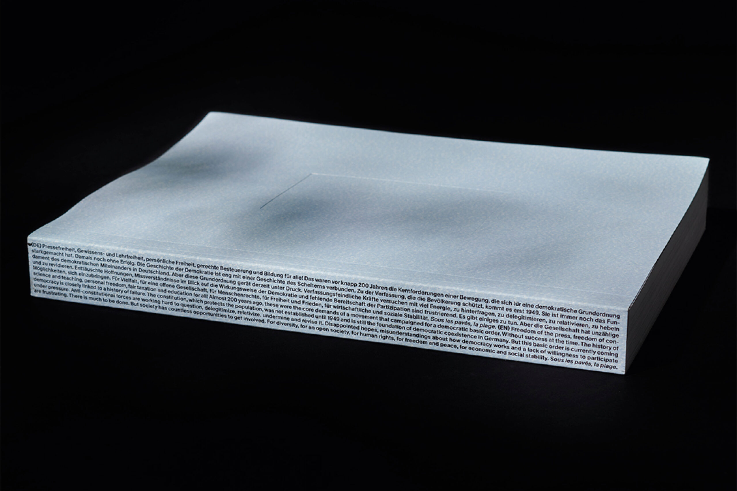 Freedom of the press, freedom of conscience and teaching, personal freedom, fair taxation, and education for all! These were the core demands of a movement of people who campaigned for a democratic constitutional order almost 200 years ago. Initially without success. The history of democracy is closely linked to a history of failure. The constitution that protects us was finally adopted in 1949. It is the foundation of democratic coexistence. And this basic order is coming under increasing pressure. Anti-constitutional forces are putting a lot of energy into questioning, delegitimizing, relativizing, undermining, and revising it. Disappointed hopes, misunderstandings about how democracy works, and a lack of willingness to participate cost a lot of energy. There is much to be done. But we have countless opportunities to get involved. For diversity, for an open society, for human rights, for freedom and peace, for economic and social stability. Sous les pavés, la plage.