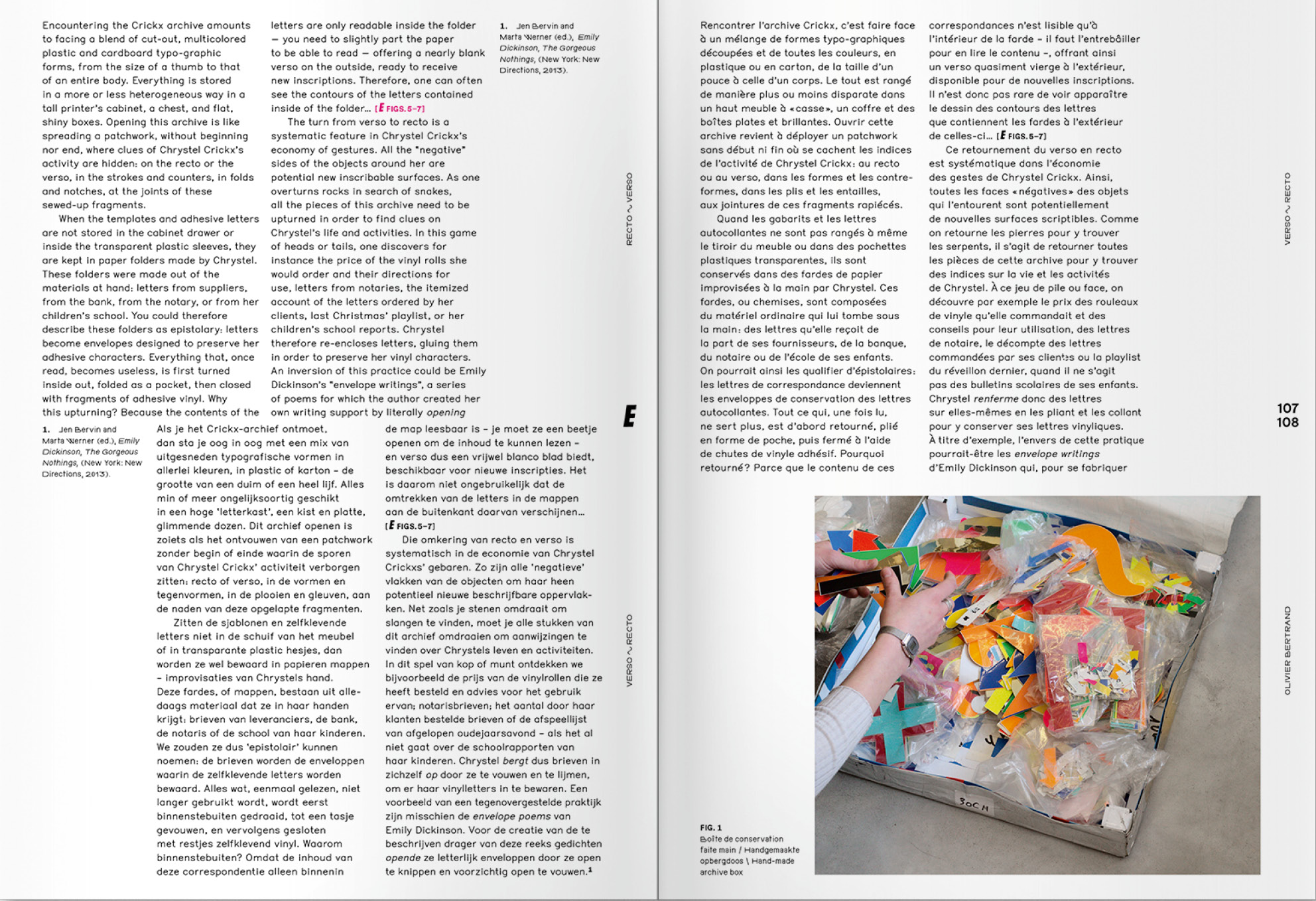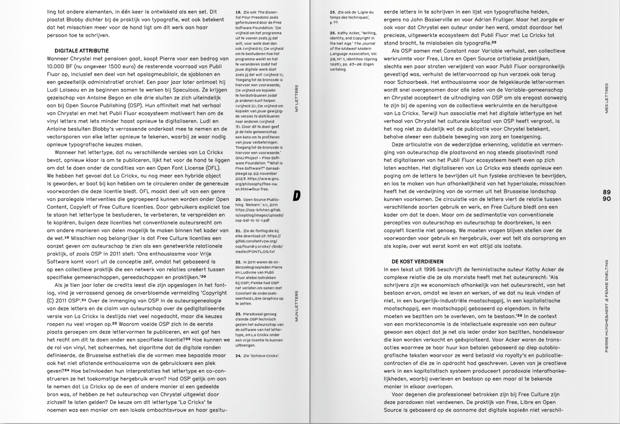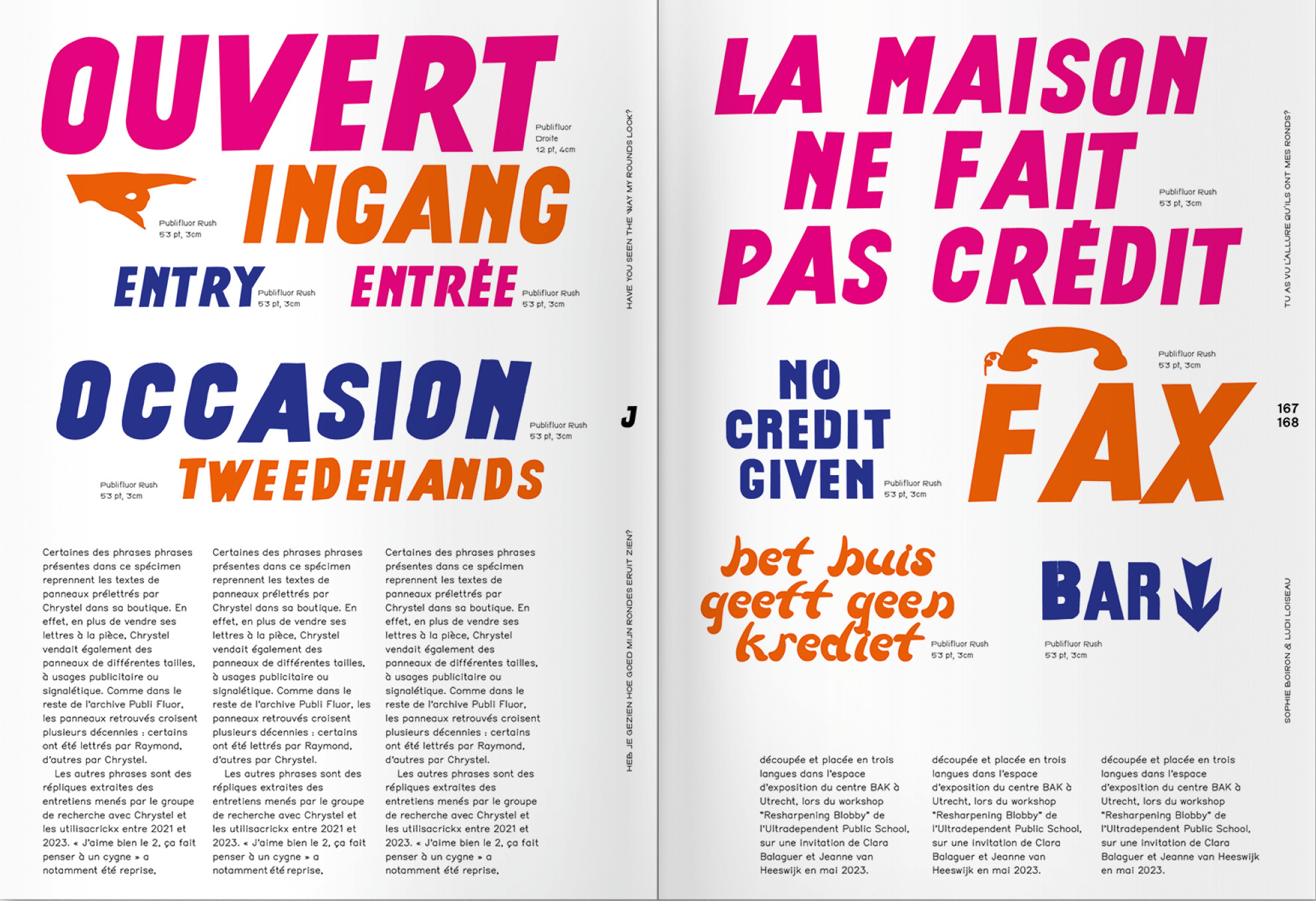 Am Rande der standardisierten Kommunikation trugen und tragen die Buchstabenformen zum städtischen visuellen Umfeld in Brüssel und darüber hinaus bei. Dieser nicht standardisierte kollektive Essay versucht, das Leben eines Schriftmodells, seiner aufeinanderfolgenden Autoren und ihrer Werkzeuge zu erzählen und dabei das Feld zu erweitern und die Zwischenräume zwischen den vielen Geschichten zu erkunden, die Chrystel Crickx‘ Praxis hervorgebracht hat.
