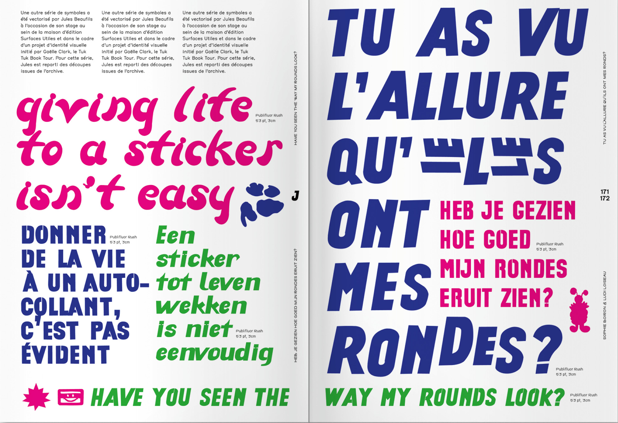 Between 1975 and 2000, the autodidact Chrystel Crickx cut letters by hand and sold them by the piece in her shop in Schaærbeek, Publi Fluor. These vinyl adhesives, bought by locals for their signs and advertising, have since been digitized and made accessible to users outside Belgium and in a range of new contexts.