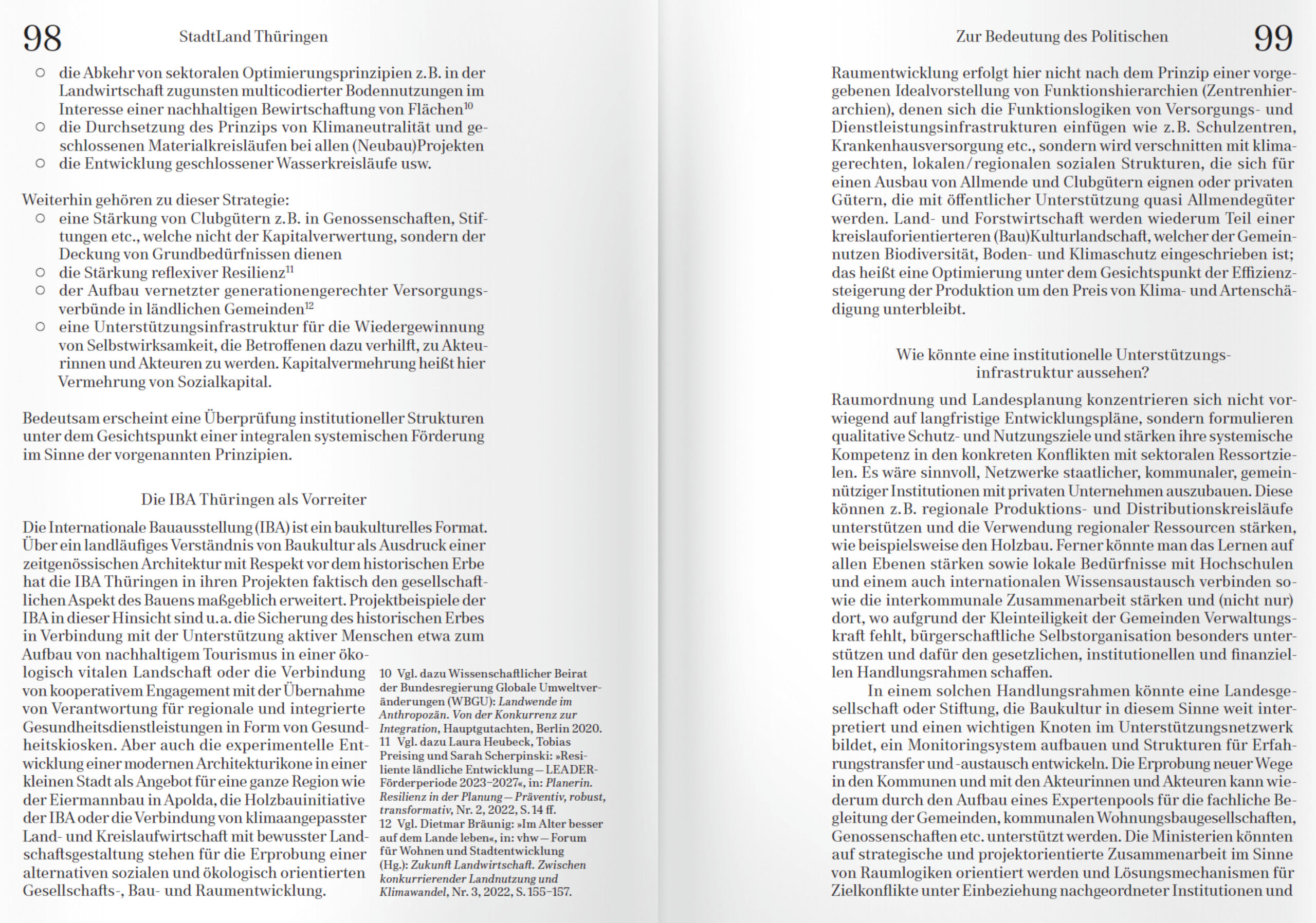 Es wird Zeit, den Blick zu weiten: Das Land ist nicht mehr die Kolonie der Stadt. Die Publikation ist ein Plädoyer, die urbane Logik zugunsten einer territorialen Logik aufzubrechen. Dafür gibt es wichtige Gründe: Die Konzentration auf die Städte vernachlässigt bislang die Entwicklung ländlicher Räume. Auch macht der Klimawandel nicht an den Grenzen politisch-administrativer Kleinteiligkeit halt. Um einen neuen gesellschaftlichen Metabolismus herbeizuführen, braucht es ein grundsätzliches Umdenken. Das Buch wirft einen Blick auf den Handlungsraum StadtLand, stellt internationale Perspektiven zu den Themen Klimaschutz, zirkuläre Ressourcenregionen und neue Governance-Modelle vor und reflektiert die Raumpraxis der Internationalen Bauausstellung (IBA) Thüringen anhand der gewonnenen Erkenntnisse aus ihrer Projektarbeit.