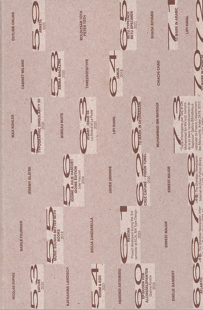 Anja Kaiser & Rebecca Stephany, Anna Haas , Ayasha Khan, Basile Fournier, Boldizsár Tóth & Péter Tóth, BureauNuits, Cabinet Milano, Can Can Press, Chiachi Chao, Daryn Roongrawewan, Giulia Zanzarella, Hubertus Design, Javier Unknos, Jennifer Carniel, Jérémy Glâtre, Katharina Landisch, Laura Csocsán, Lipi Raval, Luis Borchardt & Dean Schwarz, Gruppo Due, Max Kohler, Milana Herendi & Tiziana Artemisio, Nicolas Dupuis, Nina Steimel, OFFSHORE, Paul Pacher, Romina Vetter, Samira Schneuwly, Samuel Salminen, Shaqa Bovand, Sometimes Always, Studio Ground Floor, Team Thursday, Threedotstype.