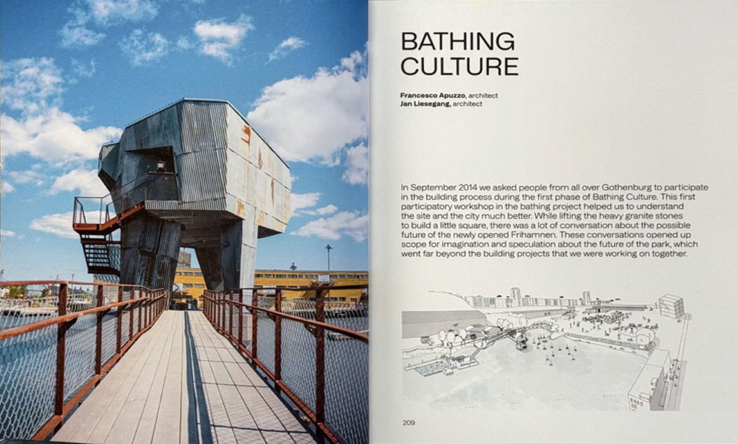 Mehrere Architekturbüros, Ingenieure, Experten und Künstlerkollektive haben sich an Jubileumsparken beteiligt. Viele von ihnen haben zu diesem Buch beigetragen – Raumlabor Berlin, atelier le balto, Afry, Serneke, New Order, Recetas Urbanas, Älvstranden, Polyplan und andere – und MARELD hat den Prozess zusammengestellt und koordiniert. Wie der Park ist auch das Buch ein Gemeinschaftswerk.