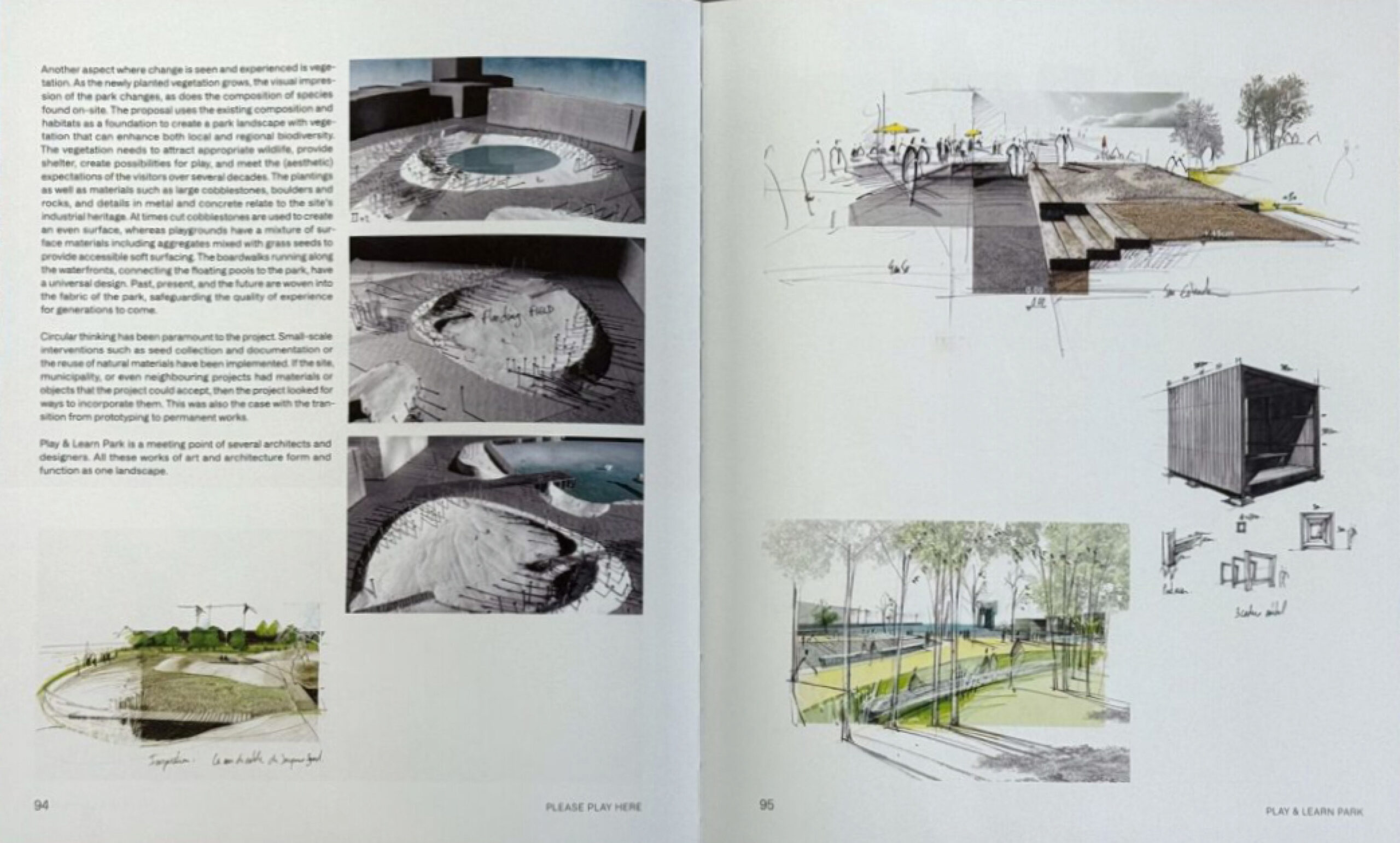 Several architectural offices, engineers, experts, and artist collectives have participated in Jubileumsparken. Many of these contribute to the book – Raumlabor Berlin, atelier le balto, Afry, Serneke, New Order, Recetas Urbanas, Älvstranden, Polyplan and more – and MARELD compiles and coordinates the process. Like the park, the book is also a joint work.